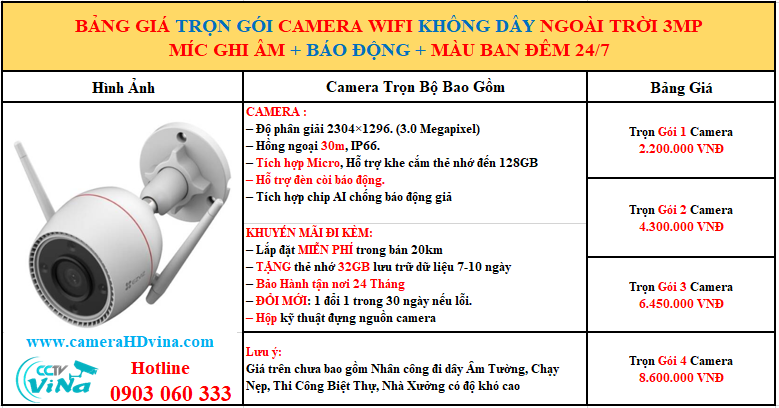 BÁO GIÁ TRỌN GÓI CAMERA WIFI KO DÂY